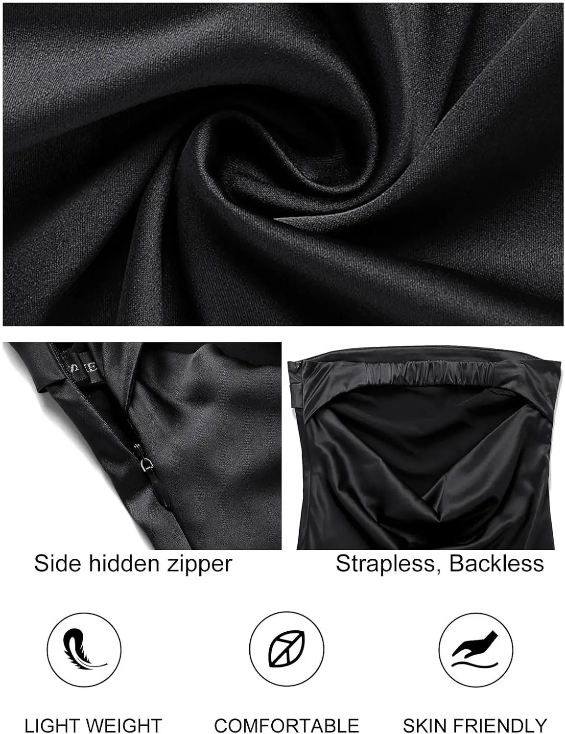 Women's 2025 Summer Strapless Satin Tube Bodycon Backless Wedding Guest Maxi Dress Casual Long Length Breathable Natural